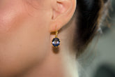 Featuring a stunning oval-shaped mystic quartz in a captivating lolite blue hue, these earrings exude an ethereal sparkle with every movement.