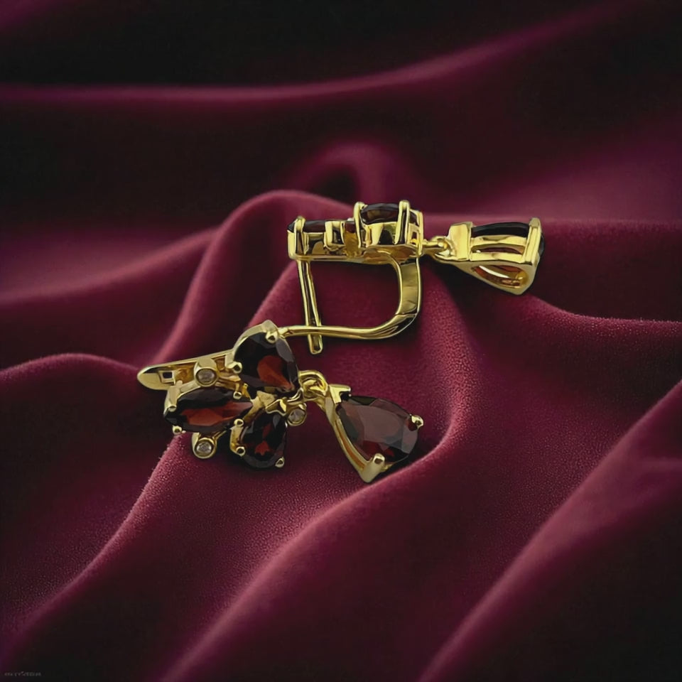 Haspiera Red Trillium Drop Earrings Garnet Gemstone