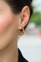 Wear them during work or at special gatherings. The design fits both casual and elegant looks. The hoops feel lightweight on the ears. They close securely for comfortable all-day wear. Each pair highlights vibrant color and sparkling detail.