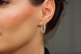Make a statement with Haspiera's elegant sky blue topaz hoops. These earrings bring eye-catching sparkle to any look. The refined gold finish makes each hoop stand out. Every gemstone is set with care. The sky blue topaz stones shine with a soft blue glow.